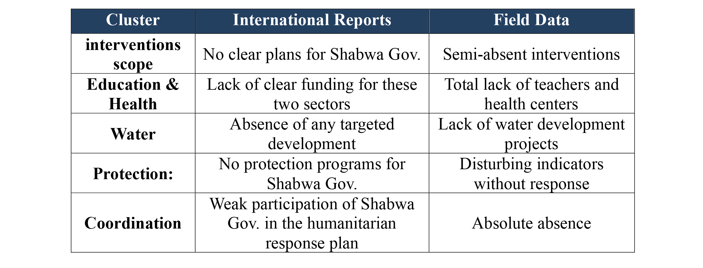 - Using international reports and analyses to put pressure on donors and raise the priority of these governorates in national plans and future funding.