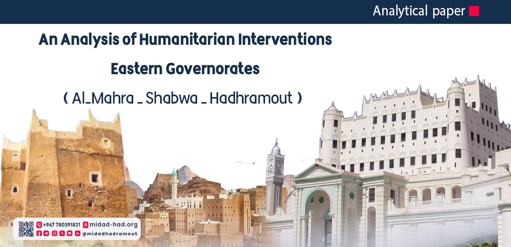 This paper highlights the reality of humanitarian interventions in the eastern governorates of Yemen (Al-Mahra, Shabwa, and Hadhramout) during the period from 2020 to 2025, based on field and desk analysis using quantitative and qualitative tools. Despite some stability in these governorates, the study showed clear gaps in funding, coordination, geographic equity, and project sustainability.