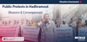 Over the past few months, Hadhramout Governorate has witnessed repeated waves of public protests, which have escalated in recent days and taken various forms, from strikes and sit-ins to roadblocks and suspension of work in some service institutions. The motivations behind these protests differ between economic, political, and social, within a local and regional environment that is unstable. This assessment seeks to analyze the reasons behind the protests, identify influential forces, assess the consequences, and consider possible scenarios.