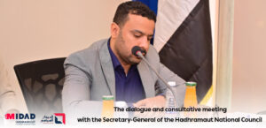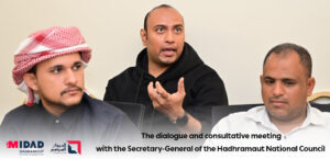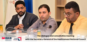 The meeting was attended by Mr. Jamaan Saeed bin Saad, Assistant Secretary-General of the Hadhramaut National Council, Engineer Abdulkhaleq Al-Haddar, and the Head of the Midad Hadhramaut Center for Strategic Research and Studies .