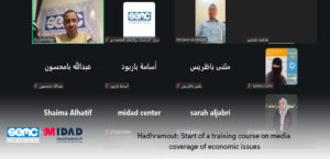 On Wednesday, January 14, 2026, MIDAD Hadhramout Center for Research & Strategic Studies and Economic Studies and Media Center have launched a specialized training workshop on empowering media professionals to understand and analyze local economic issues. The workshop is being held online via Zoom for two days, with the participation of a number of journalists and media professionals interested in economic affairs in Hadhramout Governorate, eastern Yemen.