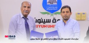 في خطوة تعكس حرص #مركز_مداد_حضرموت للأبحاث والدراسات الاستراتيجية على توسيع شراكاته المجتمعية وتعزيز التعاون الأكاديمي ، جرى توقيع مذكرة تفاهم بين المركز و #جامعة_سيئون، بحضور رئيس المركز المهندس : عبدالخالق الهدار ، ورئيس الجامعة الأستاذ الدكتور : محمد عاشور الكثيري.