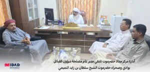أدارة مركز مداد حضرموت تلتقي مدير عام مصلحة شؤون القبائل بوادي وصحراء حضرموت الشيخ سلطان بن زايد التميمي